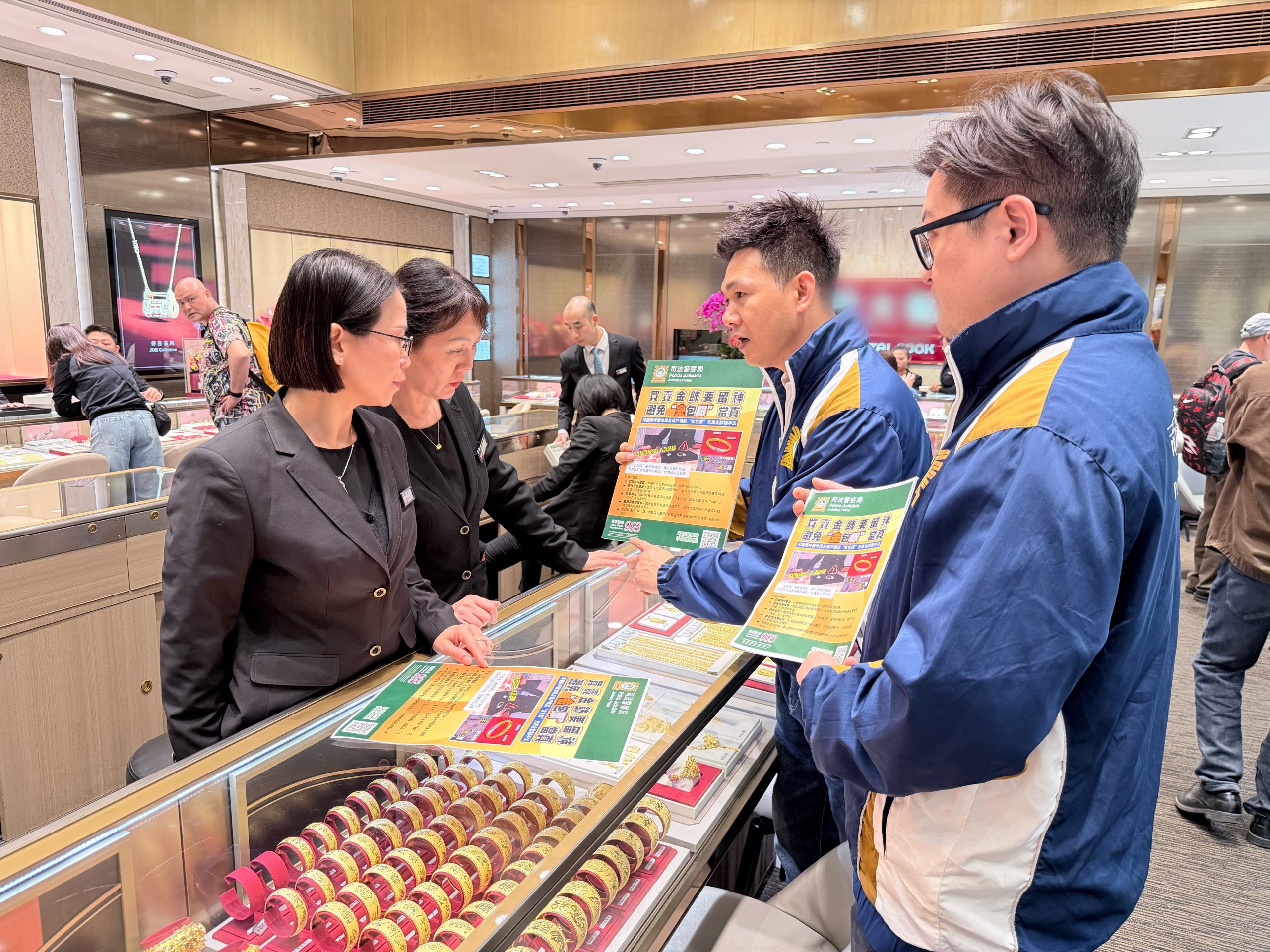 此外,司警局人員亦提醒市民購買金飾時應選擇信譽良好及設有實體店舖的商戶,並在購物後保留相關單據憑證,切勿貪圖便宜向來歷不明人士購買金飾。如遇到有人以明顯低於市價放售黃金商品,或以急需變賣套現等為由兜售黃金或金飾,應提高警覺,審慎核實,避免因一時疏忽而蒙受損失。若遭到犯罪侵害,應馬上報警求助。