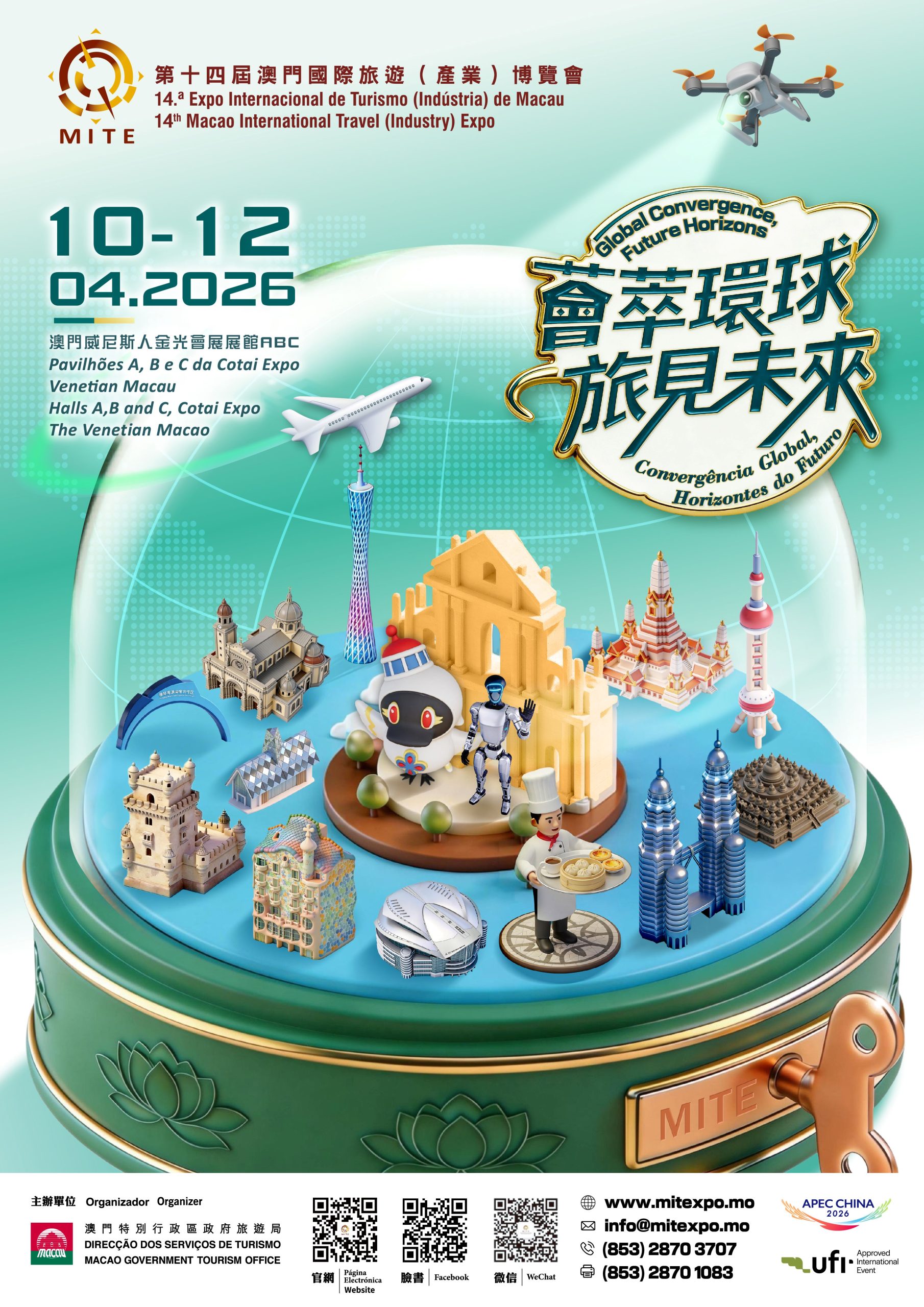 旅博會於今日揭幕,一連三天假澳門威尼斯人金光會展展館舉行,公眾免費入場。今屆旅博會以“薈萃環球,旅見未來”為主題,會期內將舉辦超過一百三十場包括海內外旅遊推介會、業界論壇、工作坊和展演等不同主題活動。明天將舉行“二零二六中西葡旅遊產品推介會│企業專場”及“二零二六粵港澳大灣區旅遊發展高級論壇:康養旅遊煥發銀髮經濟”等多項亮點活動。