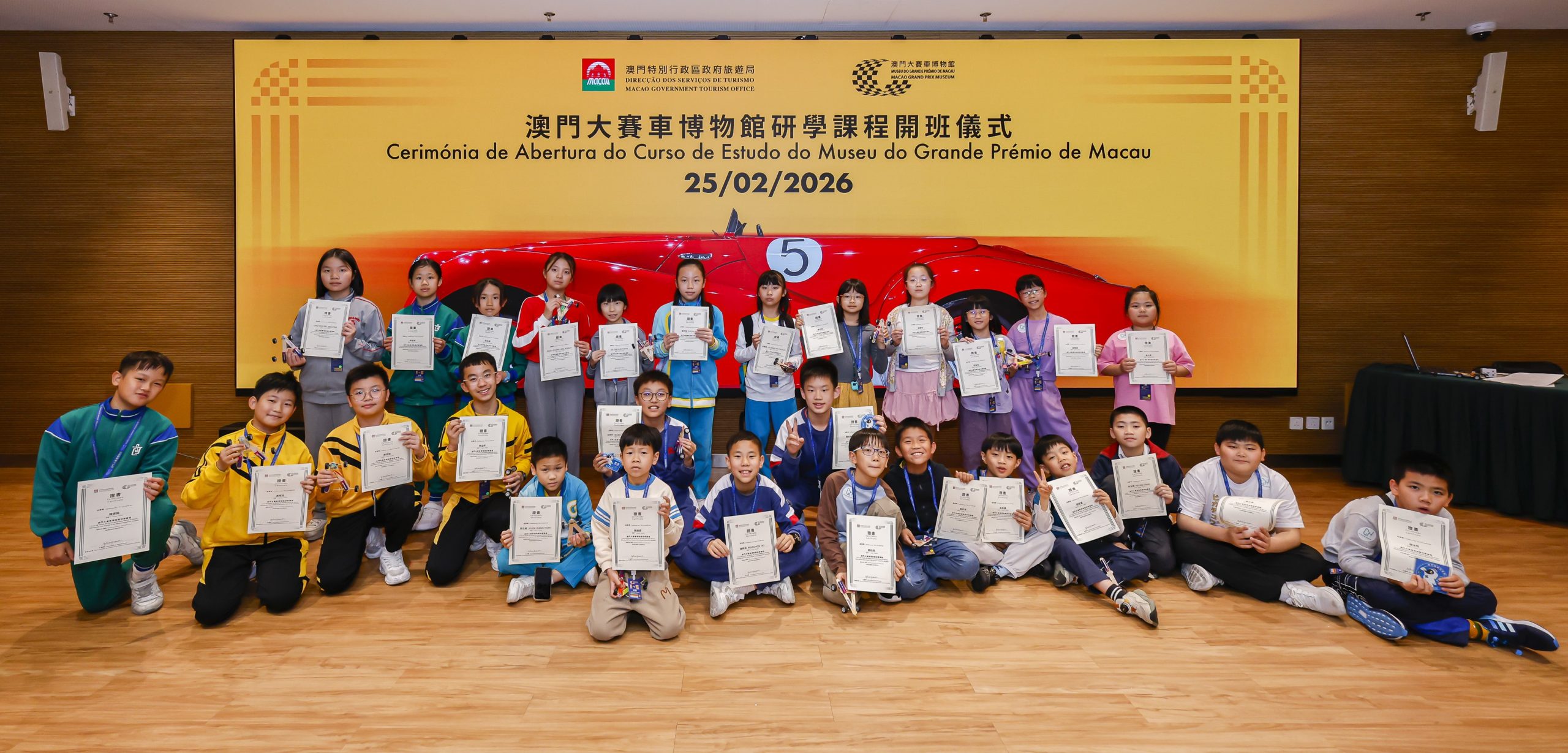 旅遊局於今(25日)在澳門大賽車博物館舉行研學課程開班儀式,讓學生率先體驗課程,加強宣傳推廣。未來將適時調整課程主題內容,持續提升整體教學質素,更好地發揮教育功能,傳承澳門格蘭披治大賽車文化。