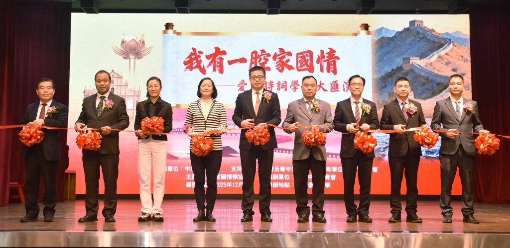 【本報訊】「人生自古誰無死,留取丹心照汗青。」、由家國情懷協進會主辦,澳門中華教育會協辦的「我有一腔家國情–愛國詩詞學界大匯演」,昨在澳門濠江中學盛大舉行,來自本澳六家學校逾五百名中小學師生同台大匯演,以朗誦、歌唱、舞蹈、音樂演奏、龍獅表演等多種形式,同心詮釋一腔腔滾燙的家國情懷,沉浸式體驗了一場文采飛揚、又激蕩著家國情懷的藝術盛宴。活動獲得澳門中聯辦宣文部指導,澳門基金會贊助, 澳門教育及青年發展局支持。