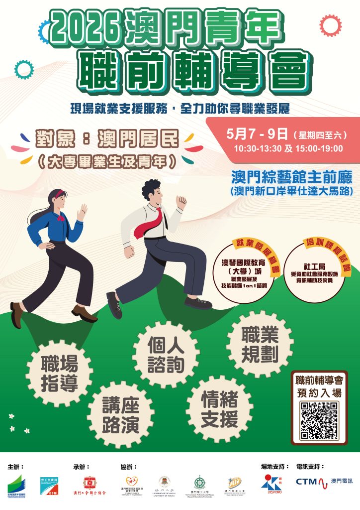 【本報訊】二零二六“澳門青年就業配對會”(下稱配對會)及“澳門青年職前輔導會”(下稱職輔會),將於下月七日至九日一連三日於澳門綜藝館舉行,提供超過一千三百個職缺。配對會及職輔會兩項活動今日起可於網上預約及報名。