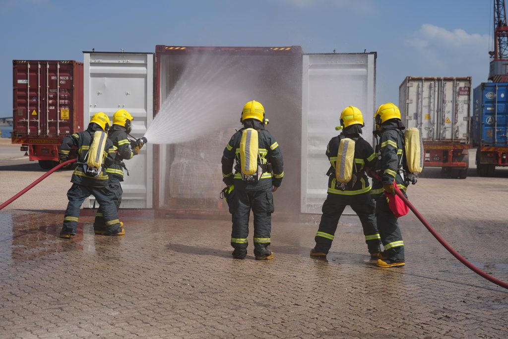 【本報訊】為加強與澳門港口管理股份有限公司在發生事故時的應急救援能力及協調溝通機制,消防局昨日上午,聯同澳門海關、治安警察局、海事及水務局和澳門港口管理股份有限公司,於路環九澳貨櫃碼頭內舉行聯合消防演習。