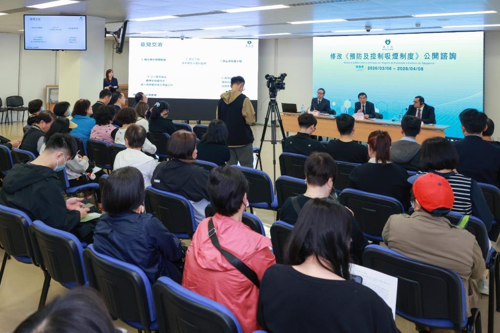 特區政府貫徹落實《健康澳門藍圖》中降低煙草使用率的目標,以立法、執法、教育宣傳及鼓勵戒煙等多管齊下策略執行各項控煙政策和措施。衛生局於三月八日至四月八日開展修改《預防及控制吸煙制度》(以下簡稱《控煙法》)公開諮詢。諮詢期間透過多種途徑收集公眾的意見和建議,包括網上、電郵、傳真、郵寄或親臨遞交等方式,共收到二千五百六十九份意見。此外,為直接聽取社會各界的意見和建議,亦舉辦了合共三場諮詢會,與各持份者及公眾進行面對面的互動交流,三場諮詢會有約二百三十人出席,普遍支持今次修法方向。