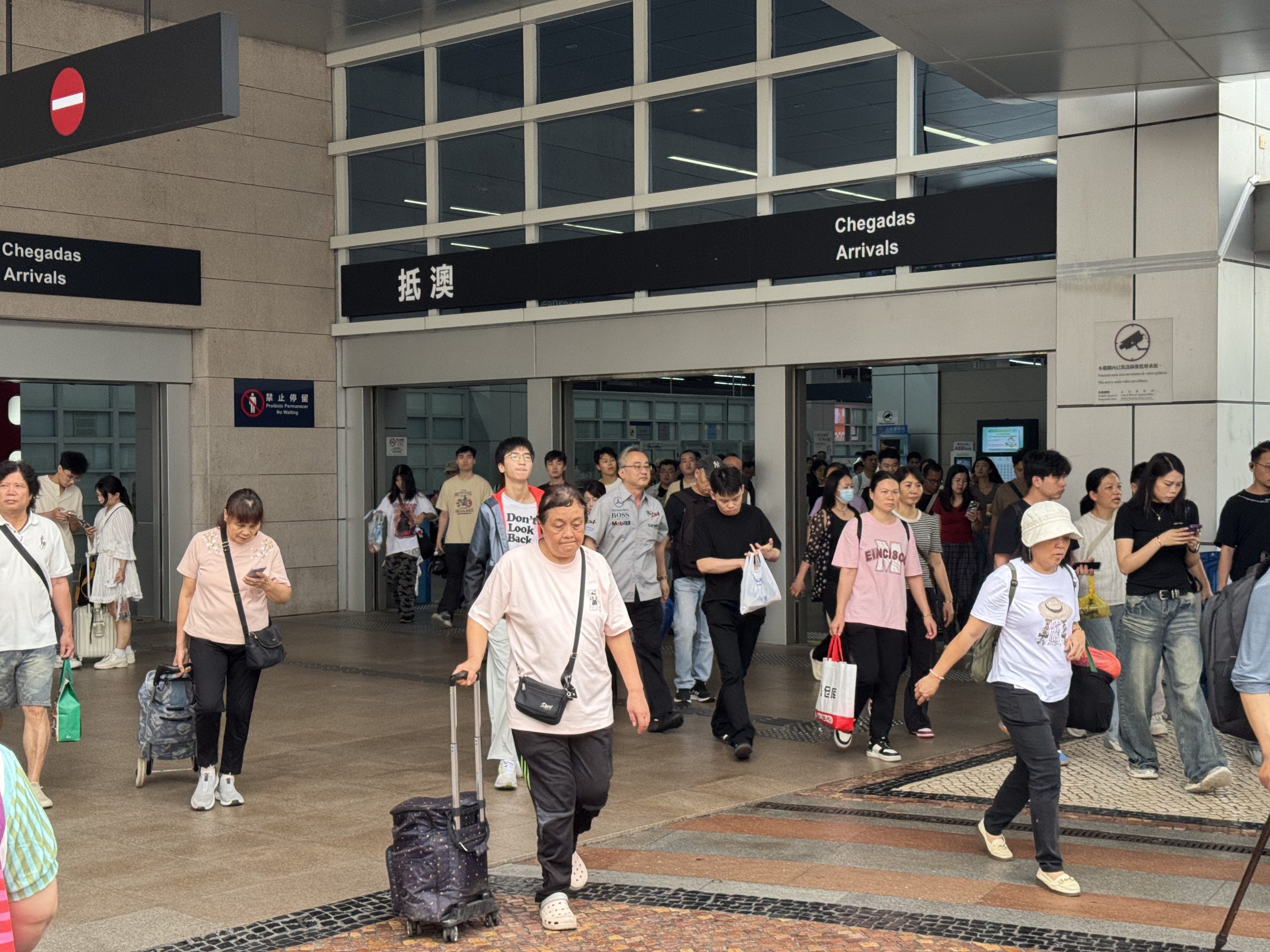 治安警公佈,昨日截至晚上九時,本澳各口岸共錄得逾五十七萬人次出入境,其中入境旅客有八萬多人次。