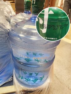 微生物檢驗不合格的桶裝水是“長命水村飲用天然水”,容量:十八點九升,生產日期是二零二五年五月二十三日,產地為廣東中山,檢出大腸桿菌群含量不合格。涉事產品以訂購散客為主,沒有供應醫院及學校。