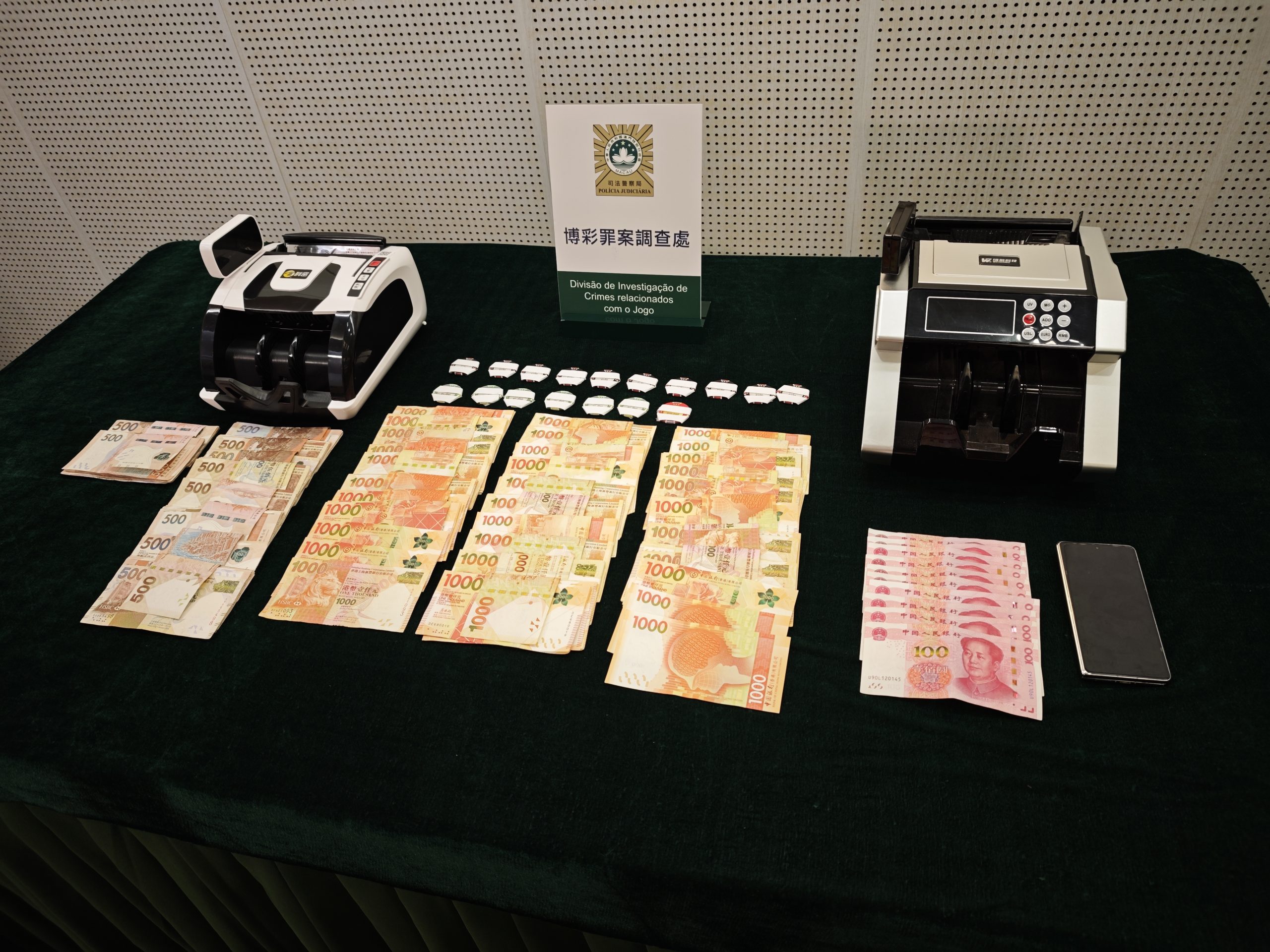 第二宗案件被捕的內地男外僱姓陶,三十一歲,店務員。司警早前收到線報,指有人在本澳做換錢黨,經分析鎖定目標。前日在新口岸某酒店的大堂及賭場內,拘捕涉案的陶某以及截獲與其交易的男賭客。陶某拒絕合作,但司警查悉陶某今年三月開始犯案。而該名賭客供稱早前與陶某兌換十萬港元現金,之後在賭場兌換部份籌碼。警方隨後在陶某租住的皇朝區某單位,起出兩部點鈔機,於其身上起出逾二十九萬多港元現金及籌碼,一部手機,連同賭客的十萬港元現金及籌碼一同扣押。此外,司警懷疑陶某涉假聘用,會另案跟進。同時發現陶某租用非法旅館,已通知旅遊局跟進。