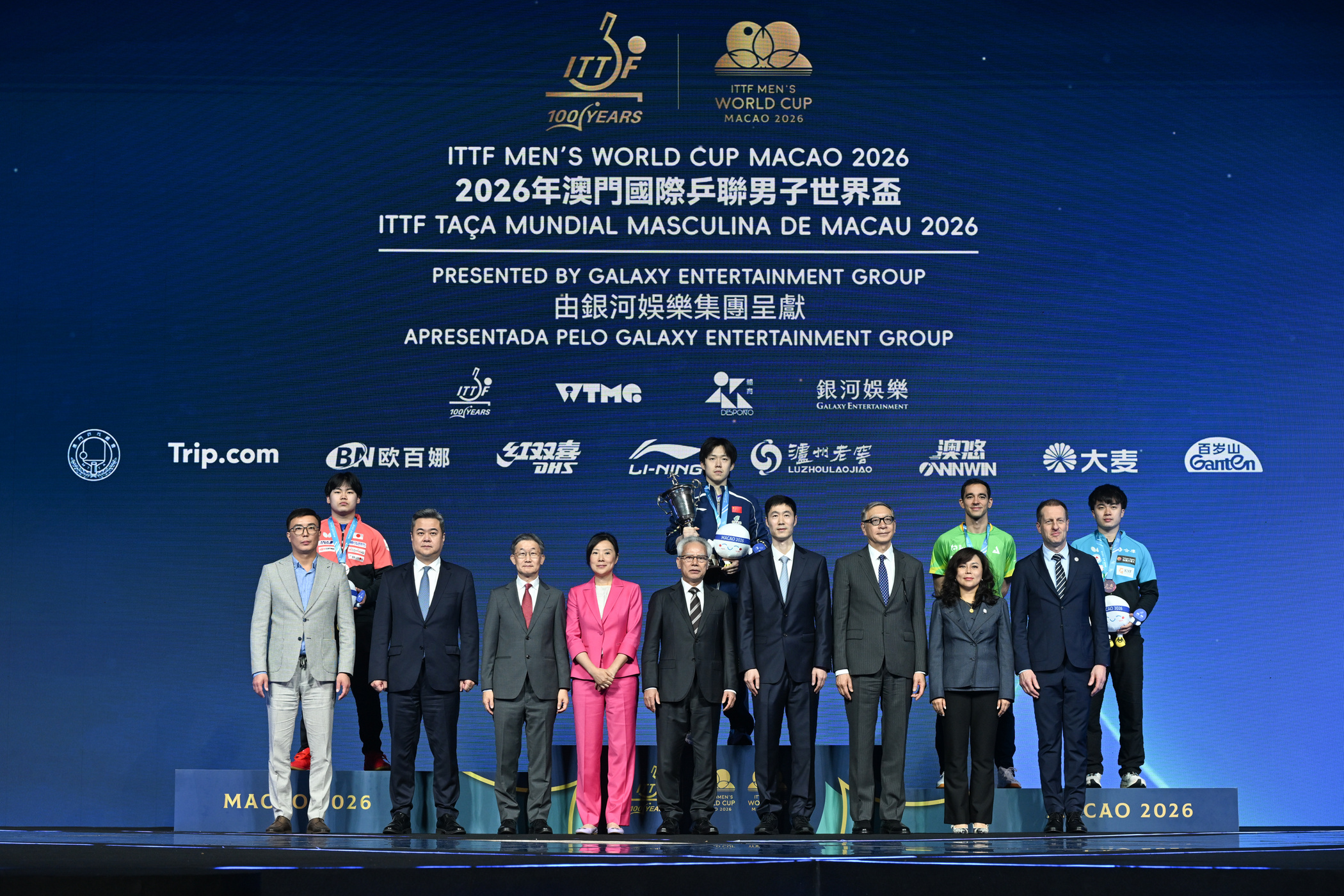 【本報訊】由國際乒乓球聯合會(ITTF)授權,體育局、銀河娛樂集團及世界乒乓球管理集團有限公司主辦、澳門乒乓總會協辦的「2026年澳門國際乒聯男子及女子世界盃 ─ 由銀河娛樂集團呈獻」,前(5)日在銀河綜藝館上演準決賽及冠軍戰,男、女子世界盃冠軍分別由中國王楚欽及孫穎莎奪得。
