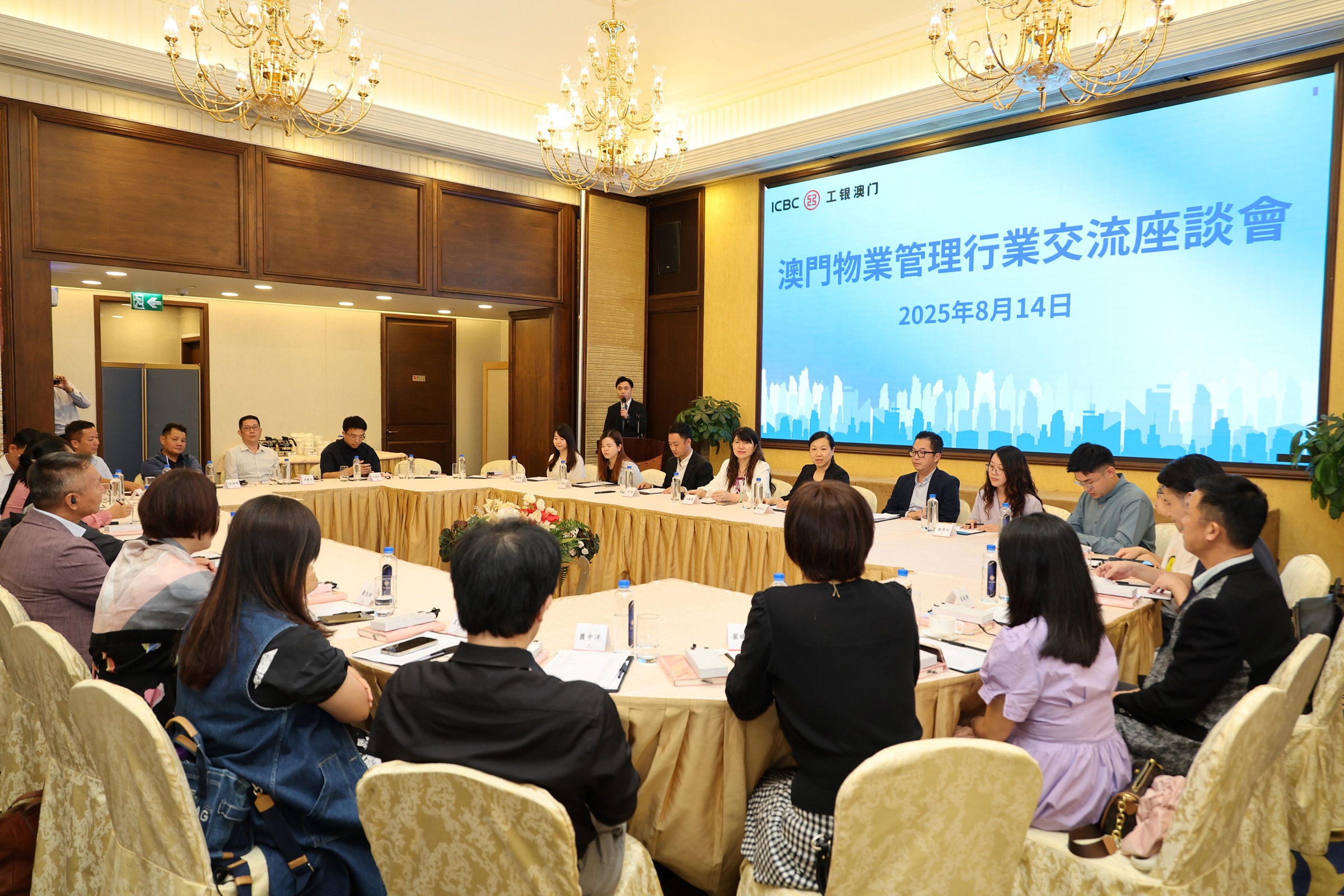 座談會邀請多家商協會及企業代表參與,包括國聯物業管理有限公司負責人兼澳門物業管理業商會副會長楊永泰、澳門保安、清潔服務業商會理事長蕭錫權、星王旅遊陳青松、高飛旅遊李嘉誠、韓龍旅遊李德心、新星旅遊梁德華以及工銀澳門中小企業務團隊骨幹四十餘名。座談會聚焦行業生態構建與金融協同合作展開深入研討,現場交流氣氛熱烈。