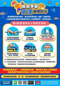 旅遊局會因應天氣變化,透過旅遊業界重要資訊通報機制,即時提醒旅客留意天氣、出行和航班等情況,以便協助旅客適時調整行程,儘量減低颱風對旅客的影響。