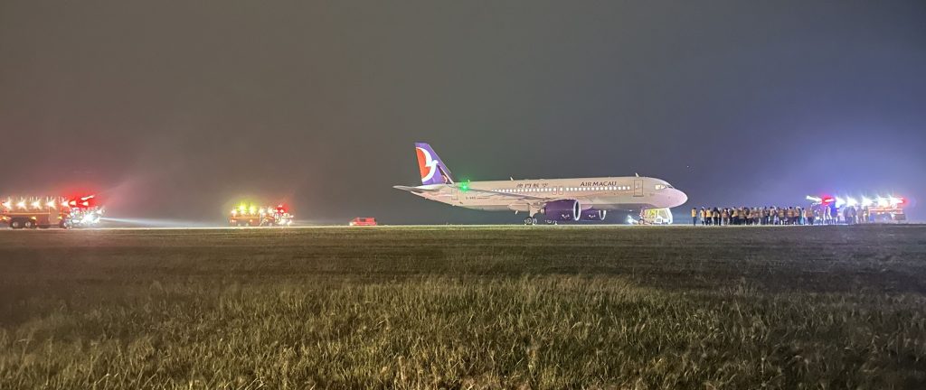 機長在意外發生後迅速向機場發出緊急狀態訊號,並要求疏散機上乘客。澳門國際機場緊急應變中心接獲警報後迅速啟動應變機制,消防及救援隊伍第一時間趕抵現場展開搜救行動。在搜救過程中,大部份乘客及所有機組人員成功逃離機艙。儘管意外造成二名乘客死亡及二十名乘客受傷,但在各方的通力合作下,所有傷者均被迅速送往醫院接受治療。今次演習不僅模擬了現場搜救環節,亦模擬了家屬接待中心和媒體接待中心的運作,以應對事故後續的溝通與支援需求。