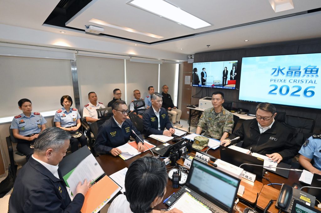 【本報訊】為進一步落實現代民防模式,提升本澳應對颱風的應急處理能力,民防架構於前日舉行代號“水晶魚二零二六”民防颱風演習。今次演習亦邀請了中國人民解放軍駐澳門部隊劉歡副參謀長出席,評估本澳防災救災各項工作環節成效並提供意見。