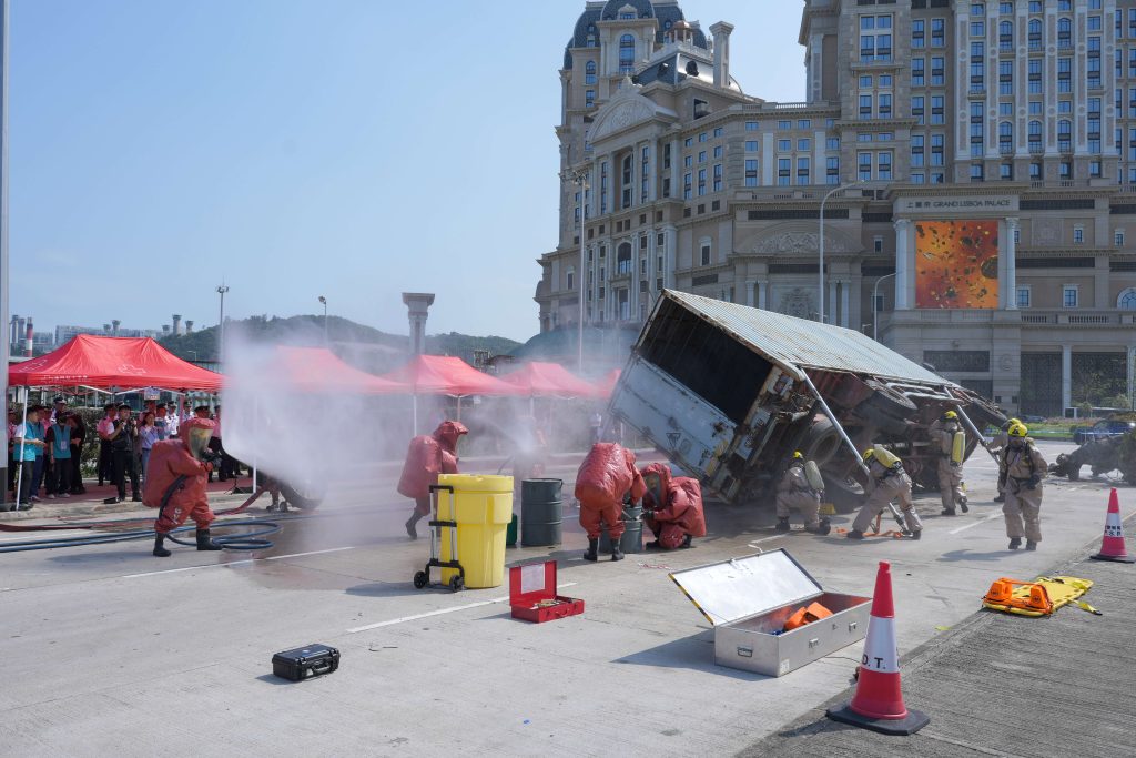 “水晶魚2026”模擬突發事件:危險品車輛於颱風期間發生交通意外,消防局開展拯救行動