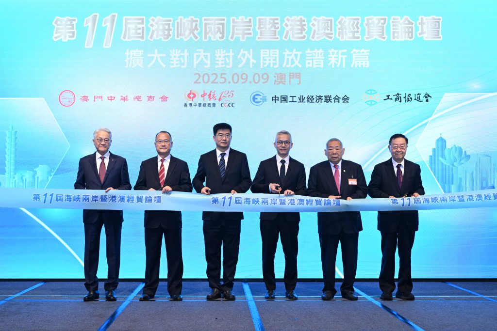 【本報訊】第十一屆海峽兩岸暨港澳經貿論壇昨日在澳門舉行,探討區域經濟發展方向與合作機遇。經濟財政司司長戴建業,以及逾一百五十名政商領袖、專家學者出席。