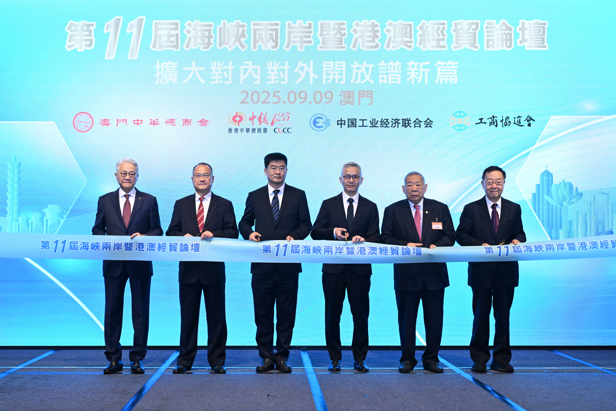 海峽兩岸暨港澳經貿論壇由澳門中華總商會、香港中華總商會、中國工業經濟聯合會、台灣工商協進會共同主辦。今屆論壇以“擴大對內對外開放譜新篇”為主題,有一百五十多位來自海峽兩岸和港澳的政商領袖、專家和學者出席,共同探討文化、體育、會展、商貿的合作空間,以及海峽兩岸和港澳工商界如何攜手“走出去”。