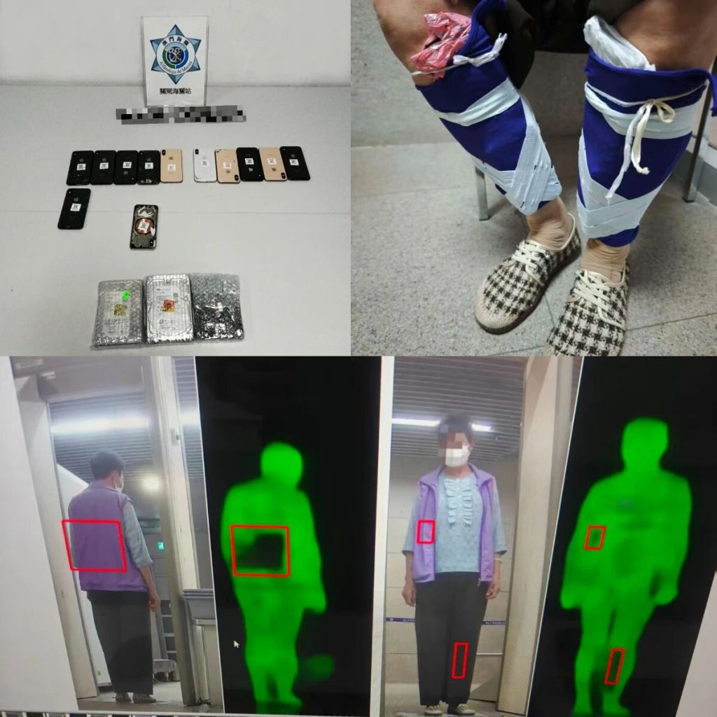 上月三十日,關員在同一口岸出境旅客檢查區,截獲一男一女本澳居民,揭發其分別將一百七十五件舊電子產品纏於身體多處,