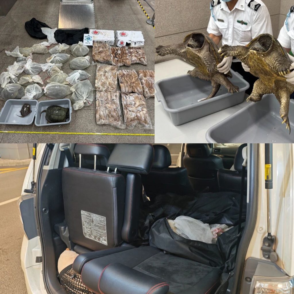 名內地男子,揭發其將三十件舊電子產品藏於身體多處。同月二十六日,關員在關閘口岸出境旅客檢查區截獲兩名內地男子,揭發其將二十六件舊電子產品藏於身體多處。同日,海關透過風險管理系統的預警佈控,在關閘口岸出境車道截查一輛跨境車輛,駕駛者為本澳男子,在該車廂內二十隻活龜及九十五公斤動物毛皮。