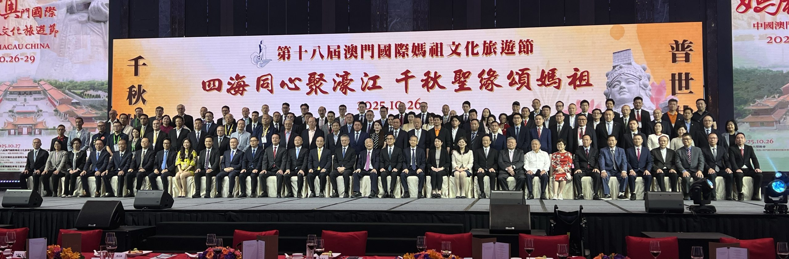 湄洲媽祖祖廟董事長林金贊致辭表示,澳門與媽祖文化的融合,早已融入城市的血脈,媽祖文化在此落地生根,與澳門的發展同呼吸、共成長,成為維繫內地與澳門的精神紐帶,更鑄就了連接全球華人的文化基因。作為媽祖文化的重要傳承地,湄洲媽祖祖廟始終與澳門媽祖文化界保持著深厚的情誼與緊密的聯繫,從共慶民俗盛典到共研文化精髓,從互派交流團到攜手推動媽祖文化申遺,見證著兩地情誼從相知走向相融。如今,媽祖文化已成為澳門多元文化的重要支柱,更成為促進粵港澳大灣區文旅融合、推動二十一世紀海上絲綢之路文明共建的橋樑紐帶。
