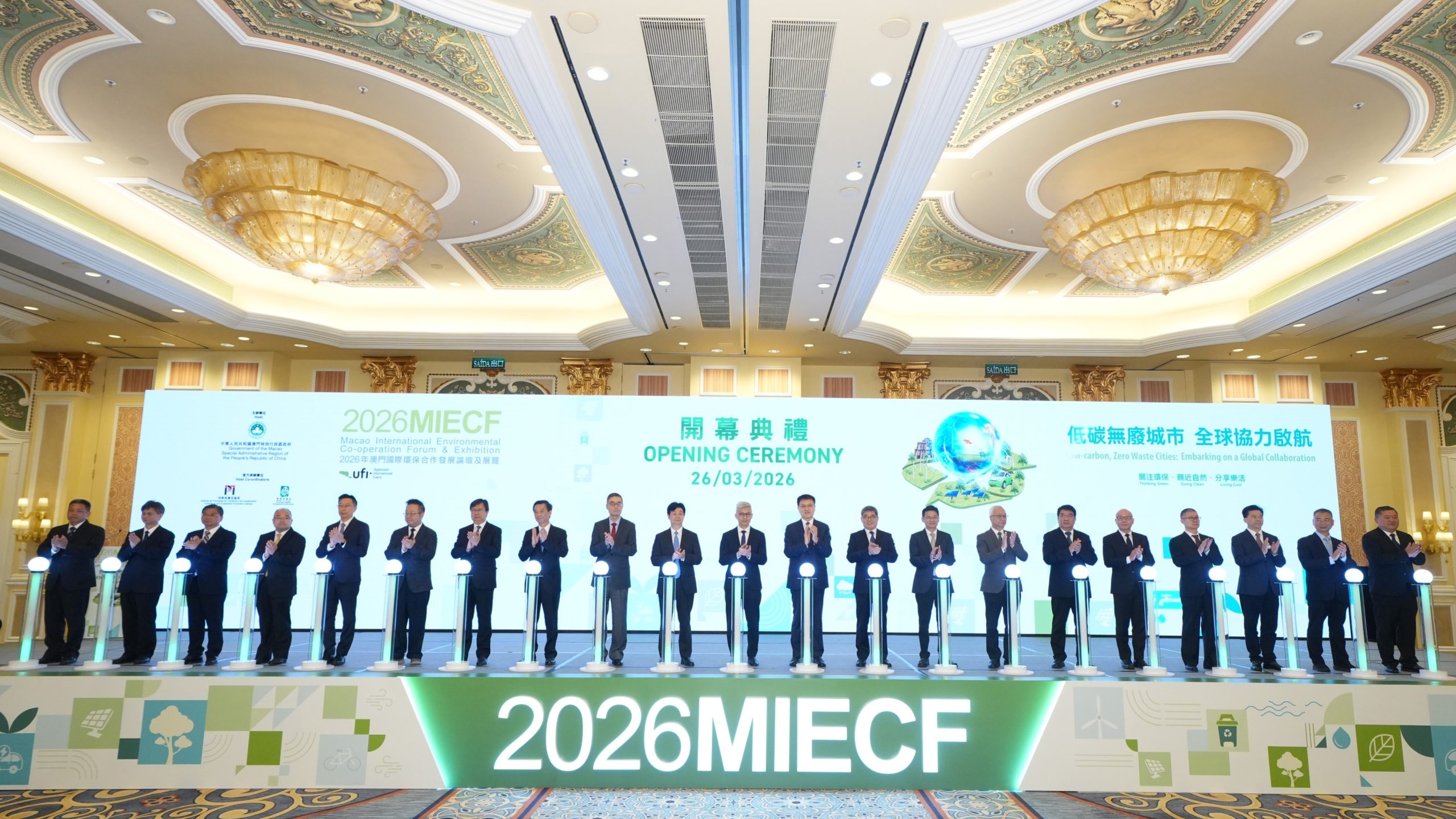 由澳門特別行政區政府主辦之“二零二六年澳門國際環保合作發展論壇及展覽”昨日起一連三天假澳門威尼斯人金光會展舉行。行政長官代表、經濟財政司司長戴建業、澳門中聯辦副主任呂玉印、運輸工務司司長譚偉文等人出席開幕儀式。
