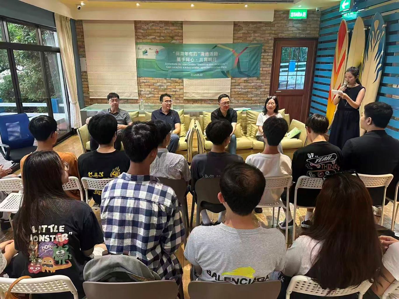 【本報訊】教育及青年發展局於8月22日在竹灣青年旅舍舉辦“與青年有約”—攜手同心.共賞明月活動,讓在澳門以外地區就讀的澳門青年學生了解澳門現時的社會發展,加強與青年學生的交流,聆聽和關顧他們對自身發展及青年事務的看法。