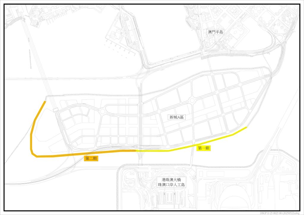 公共建設局網頁顯示,工程已於上月委託,造價一億零三百萬元。根據防災減災十年規劃要求,本澳防洪標準需提升至二百年一遇,因此需按相關標準改造 A區海堤。第二期優化工程總長度一千五百五十米,範圍包括東二堤、南一堤及南二堤,優化後的防浪牆頂標高為平均海平面上六點九米。而涉及東一堤約 一千一百米的首期優化工程已於二零二四年完成,當局將按區內發展,適時優化其餘堤岸。