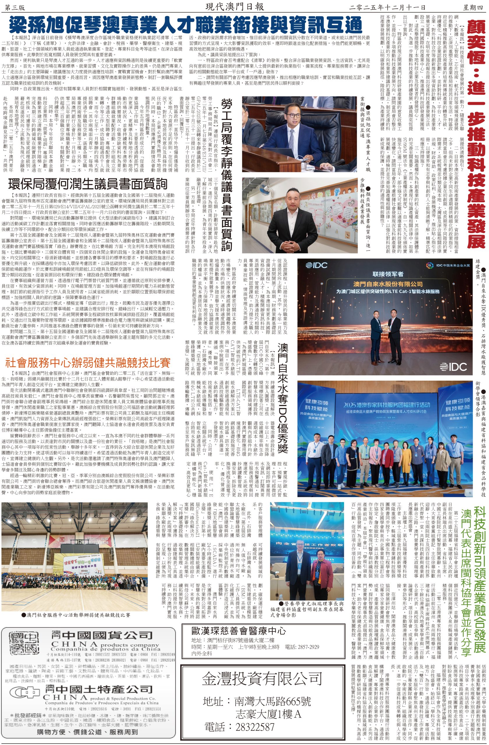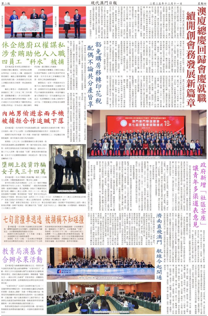 最後,他寄語該會及青年會新屆理監事繼續努力,為維護澳門的長期繁榮穩定,促進廈澳兩地各領域深度交流合作,續寫新輝煌。