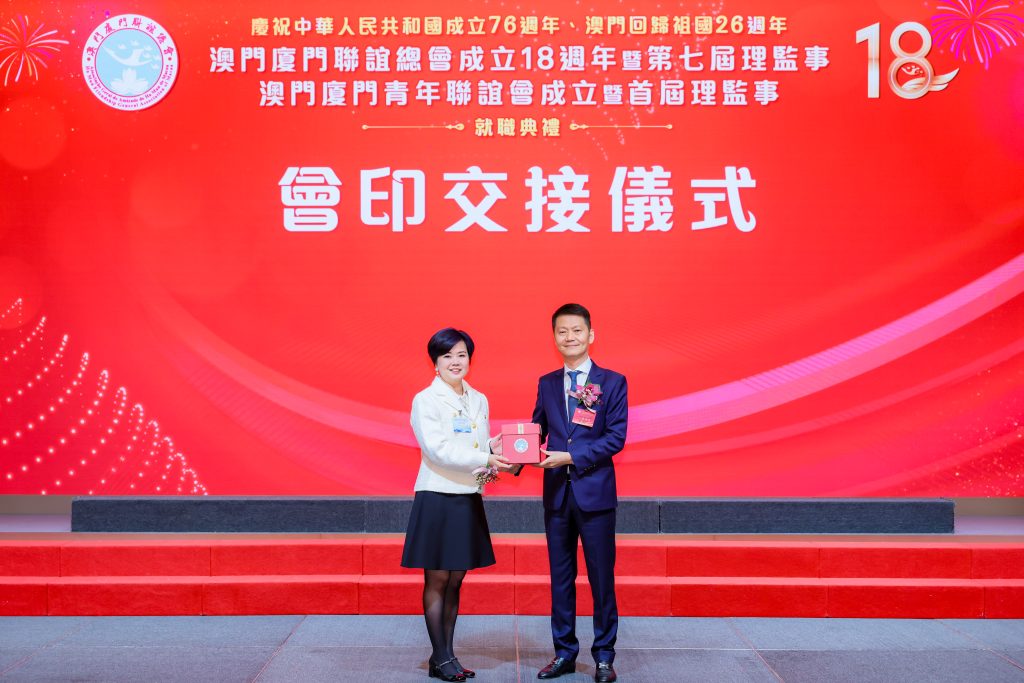 接著,第六屆會長蘇建華將會印轉交予第七屆會長高美燕後,該會第七屆理監事在全國政協委員、澳門福建同鄉總會會長陳明金監誓下宣誓就職,青年會第一屆理監事在澳門行政會委員、立法議員宋碧琪監誓下宣誓就職。