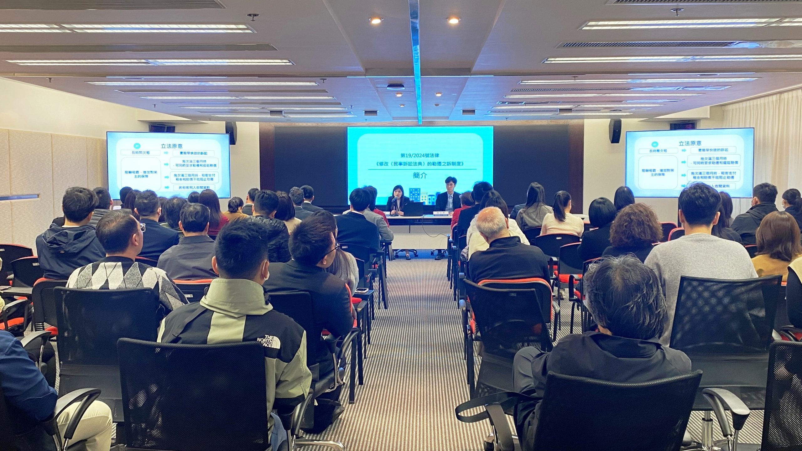 法務局在法律生效前聯同多個基層社團、商會、業界團體等舉辦九場講解會,逾五百名來自不同階層人士、社區前線工作人員及地產中介人等參加。