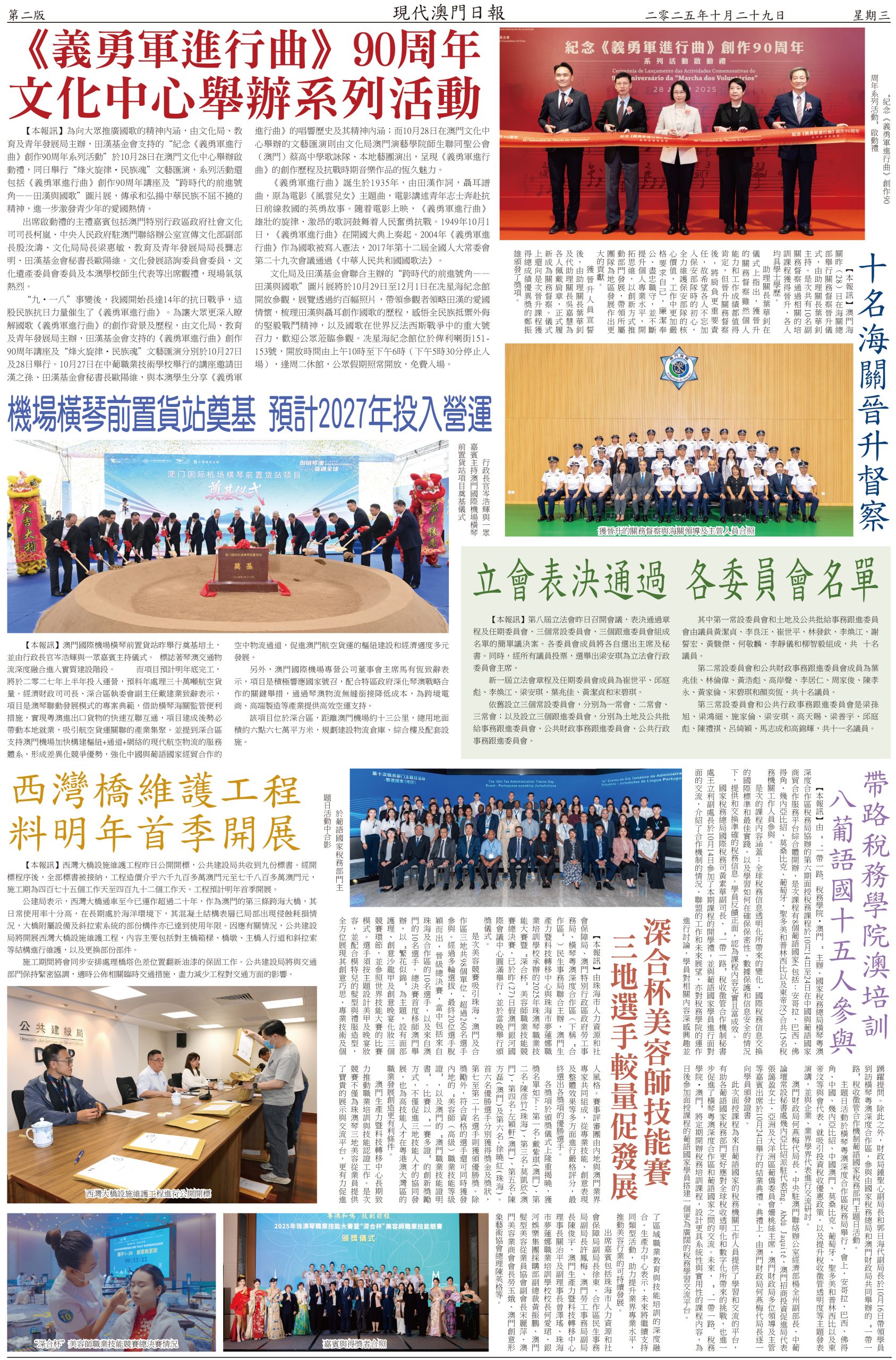 【本報訊】由澳門中華媽祖基金會主辦,湄洲媽祖祖廟董事會協辦,澳門基金會資助,以「千秋媽祖 普世共仰」為主題的「第十八屆澳門國際媽祖文化旅遊節」開幕式暨乙巳年媽祖祭典儀式,昨在澳門媽祖文化村舉行,行政長官岑浩輝,全國政協副主席何厚鏵,中聯辦主任鄭新聰,台灣中華傳統宗教總會榮譽理事長王金平,外交部駐澳特派員公署特派員劉顯法等嘉賓出席主禮。主辦單位希望透過活動,以媽祖文化為紐帶,聯結海內外炎黃子孫,增強中華民族凝聚力,讓中華文化在世界舞台上綻放光彩。