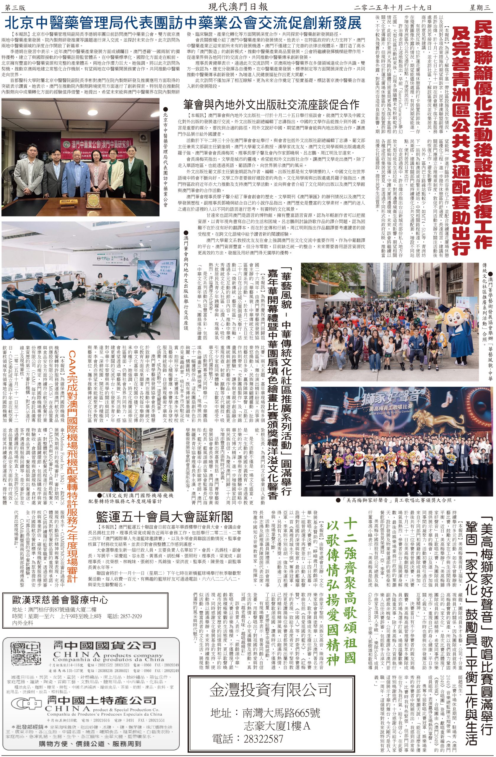 王金平致辭表示,澳門,是一座聞名世界的迷人城市。這裡不僅擁有深厚的歷史底蘊,更是中西文化交融的璀璨明珠。近年來,在「一國兩制」的成功實踐下,澳門經濟發展成就斐然,穩居世界前列,社會和諧穩定,居民安居樂業,呈現出一派繁榮祥和的景象。