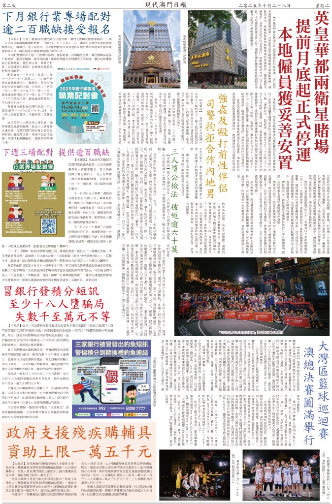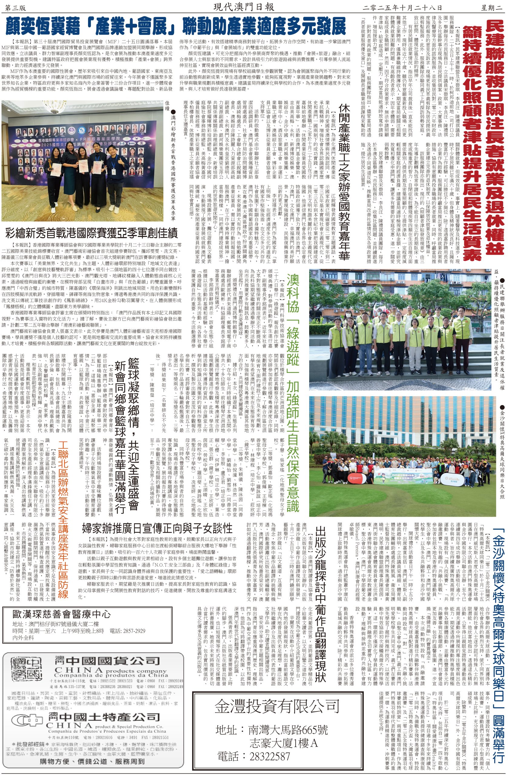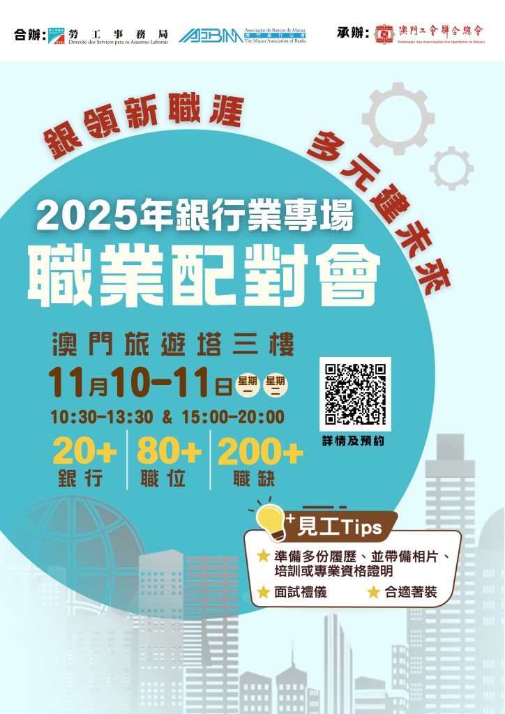【本報訊】為協助有求職需求的澳門居民盡快就業,以及為緩解業界的人資需求壓力,勞工事務局與工聯合作於十一月上旬舉辦三場行業專場配對會,合共提供一百一十一個空缺,即日起接受網上報名。