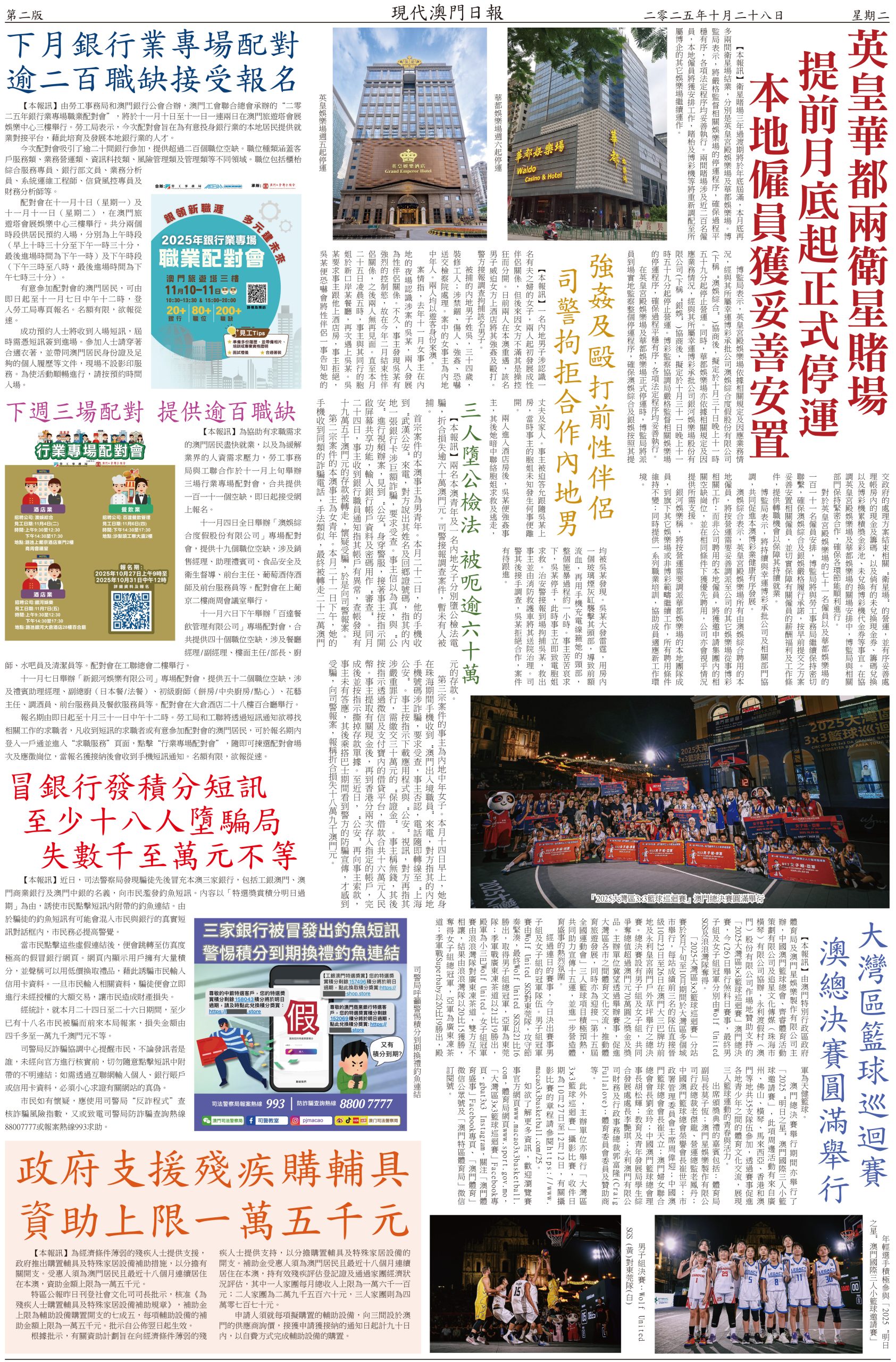 十一月四日全日舉辦「澳娛綜合度假股份有限公司」專場配對會,提供十九個職位空缺,涉及銷售經理、助理禮賓司、食品安全及衛生督導、前台主任、葡萄酒侍酒師及前台服務員等。配對會在上葡京二樓商周會議室舉行。