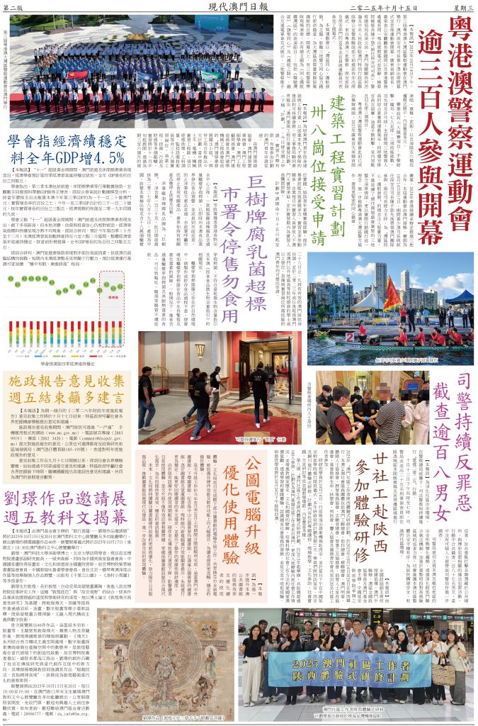 粵港澳大灣區警察運動會此前已成功舉辦兩屆,2023年廣東首次承辦首屆賽事,2024年香港接續承辦並推進三地合作。本屆運動會由澳門接棒,賽期為10月14日至17日,期間黃少澤司長與候任保安司司長陳子勁先後帶領澳門團隊參與。兩位司長接力主持,為“灣區同心、護航發展”的理念注入堅實力量,不僅延續了過往兩屆盛會凝聚的三地警方深厚情誼,更以實際行動踐行這一理念,進一步推動粵港澳大灣區警方協作,書寫更緊密的同心篇章。