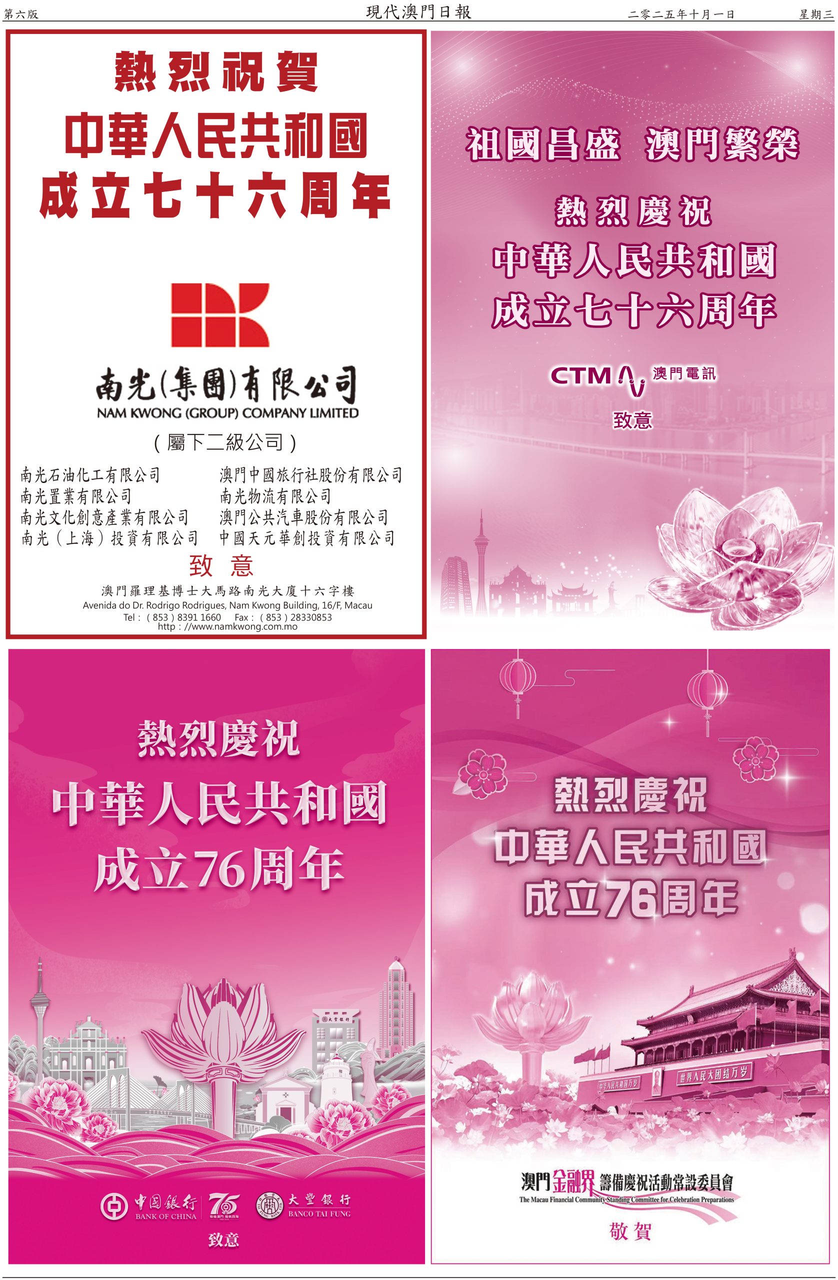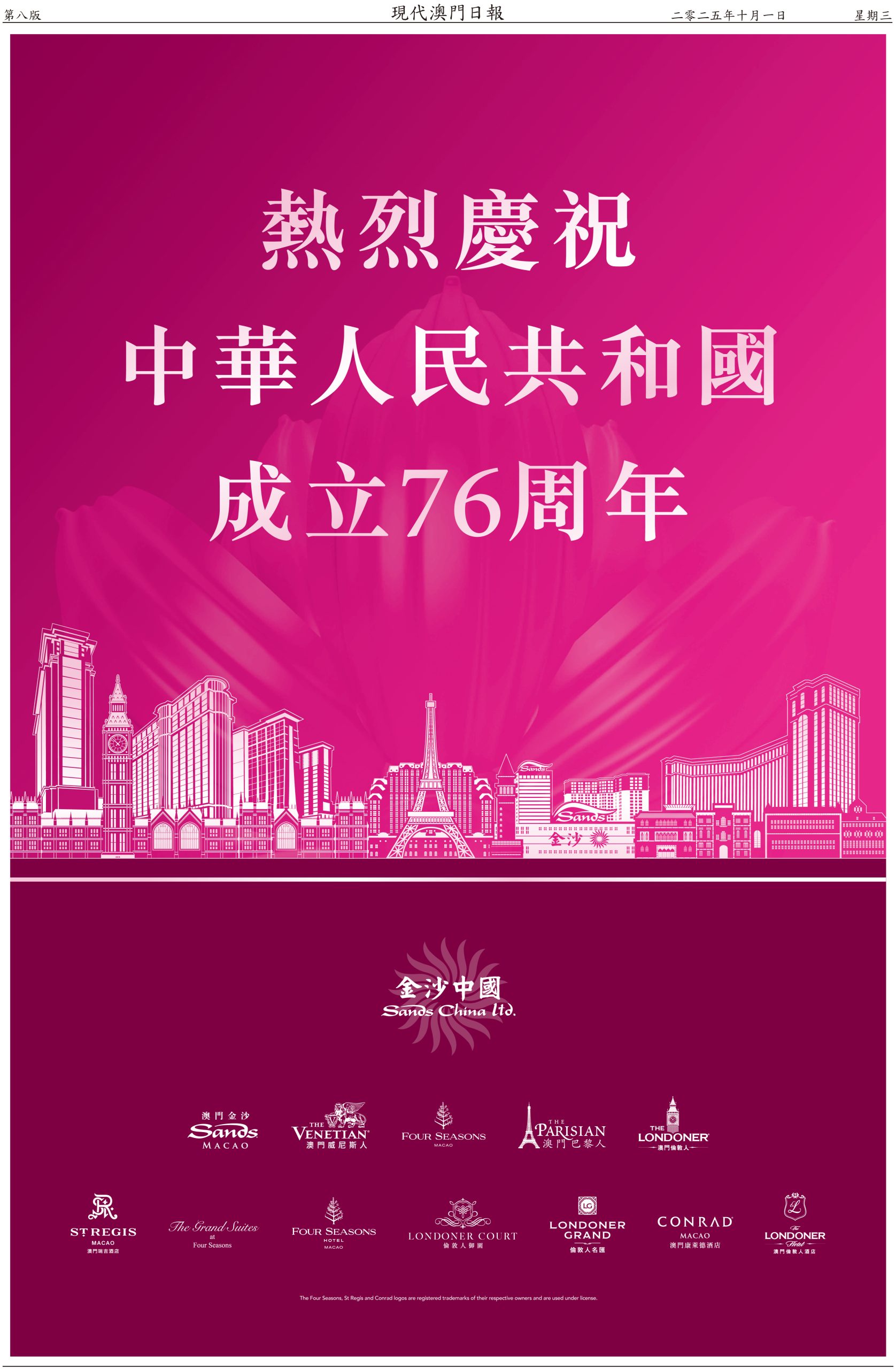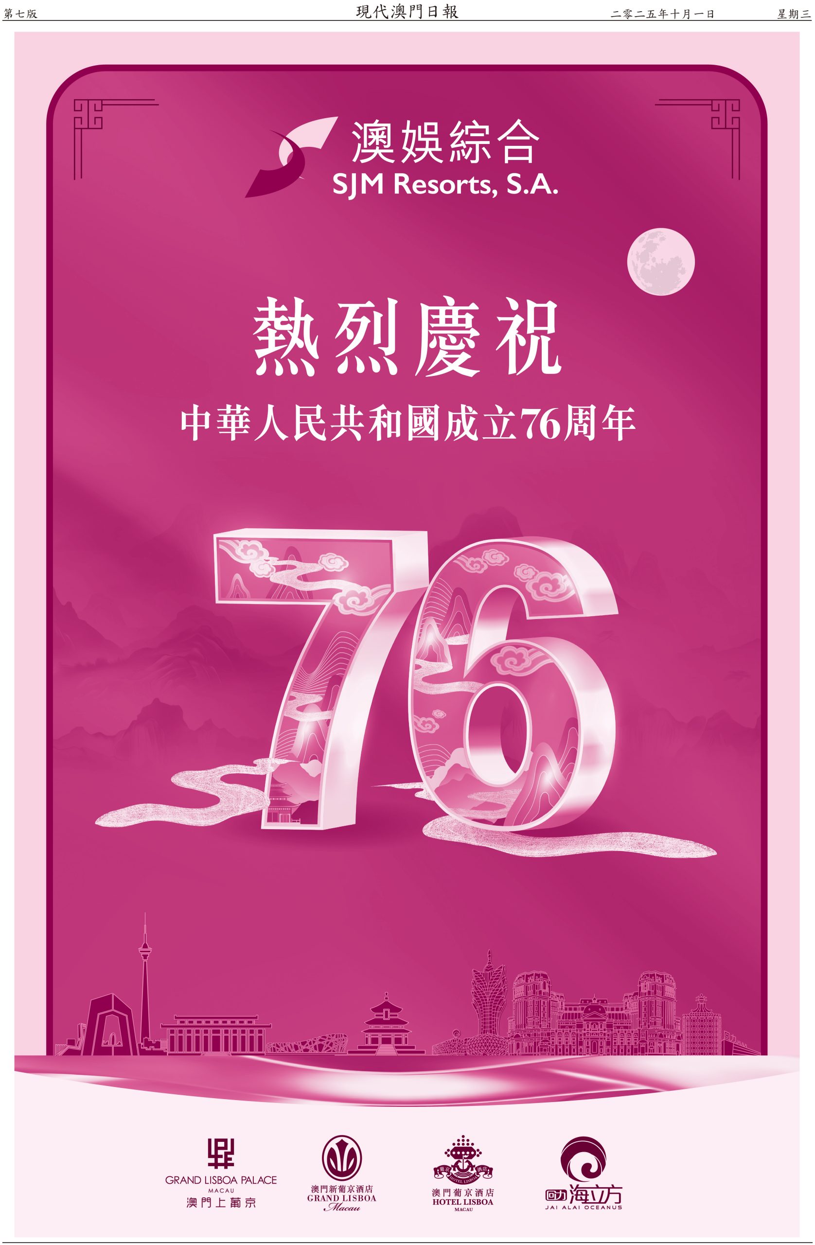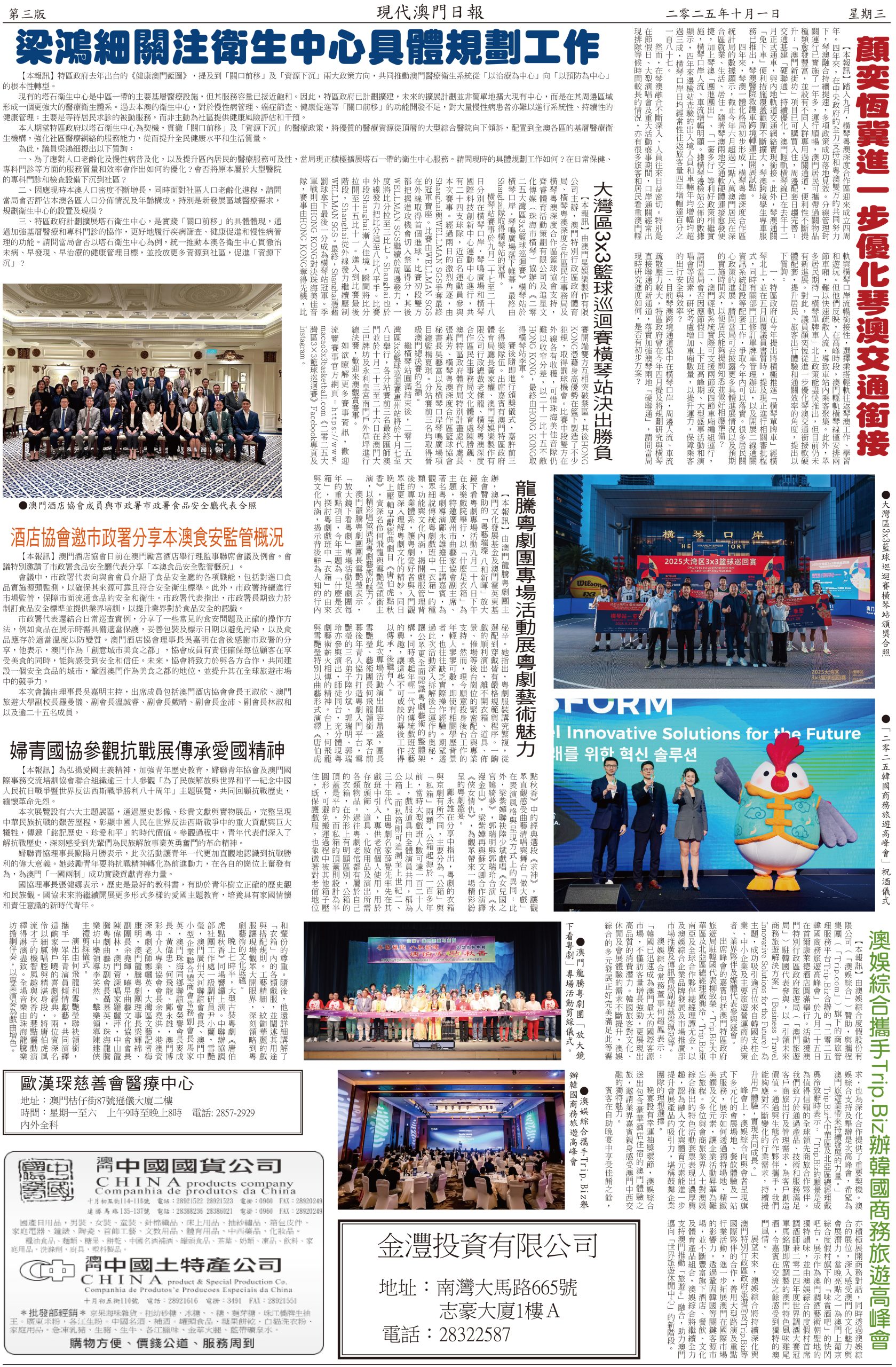 內地國慶連中秋節八日長假期今天開始,澳門警方預計期間有幾百萬人次經各個口岸出入境,其中料有一百二十萬人次旅客訪澳,日均高達十五萬人次。政府相關部門已做好部署迎接「十一」黃金週,從口岸通關、交通、旅遊區人潮管制,再到慶祝活動全部準備就緒。人多擠迫,這時候最重要是維持秩序。今年國慶假期,政府在氹仔舊城區和大三巴牌坊附近的關前後街實施行人臨時步行區,人車分隔,且有夜市配合,既能分散人流,亦能做到安全旅遊。