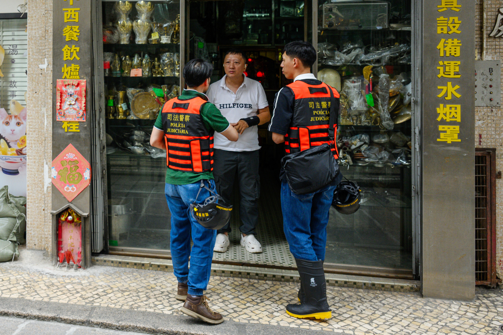 司法警察局在疏散計劃啟動後,隨時在康公廟前地至下環安仿西街開展撤離工作,共出動一百二十四人。司警局副局長賴文威表示,區內住戶和商戶共有二千四百二十五戶,根據前期工作,當中大部份商鋪或住宅無人留宿,有三百六十一戶需撤離,包括二十五間酒店、二間娛樂場、一間員工宿舍、一間安老院及一間衛生中心;撤離人數九百四十二人,當中屬於一級必須扶助有三戶共六人,二級需扶助撤離有十二戶,包括一間安老院,涉及四十名長者及十二名工作人員。