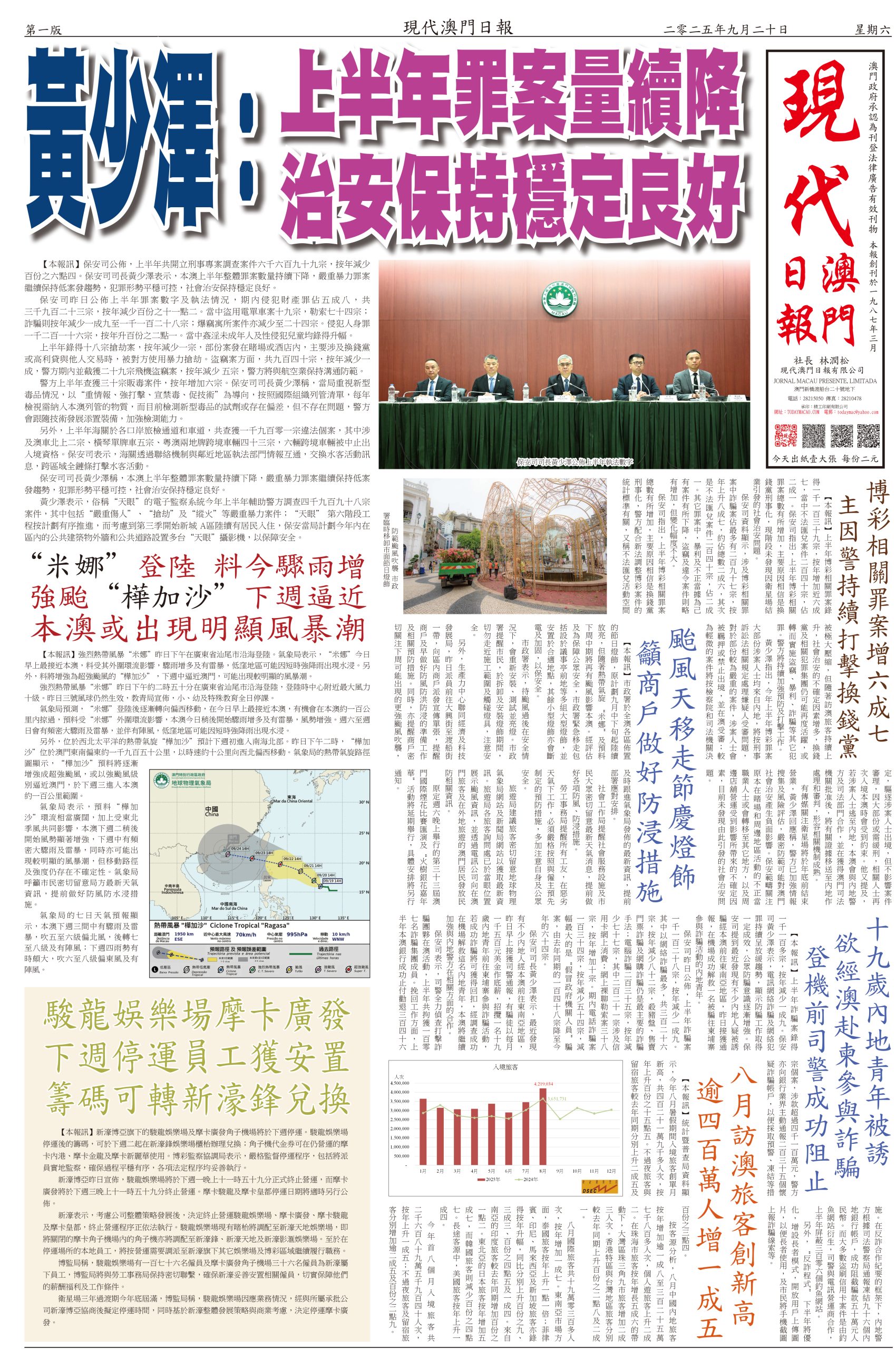 【本報訊】上半年詐騙案錄得一千一百多宗,按年減少一成九。保安司黃少澤表示,電訊網絡詐騙及網絡犯罪持續呈放緩趨勢,顯示防騙工作取得一定成效,公眾防騙意識逐漸增強。保安司提到最近發現有不少內地人疑被誘騙經本澳前往東南亞地區,昨日接獲通報,在機場成功解救一名被騙往柬埔寨參與詐騙活動的內地青年。