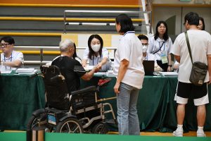 保安司司長黃少澤昨日下午到所屬的奧林匹克體育中心室內體育館票站投票。他稱,整個投票過程順利和流暢,也樂見選民踴躍投票。他呼籲所有合資格的選民行使公民權利,盡快到所屬的票站投票。