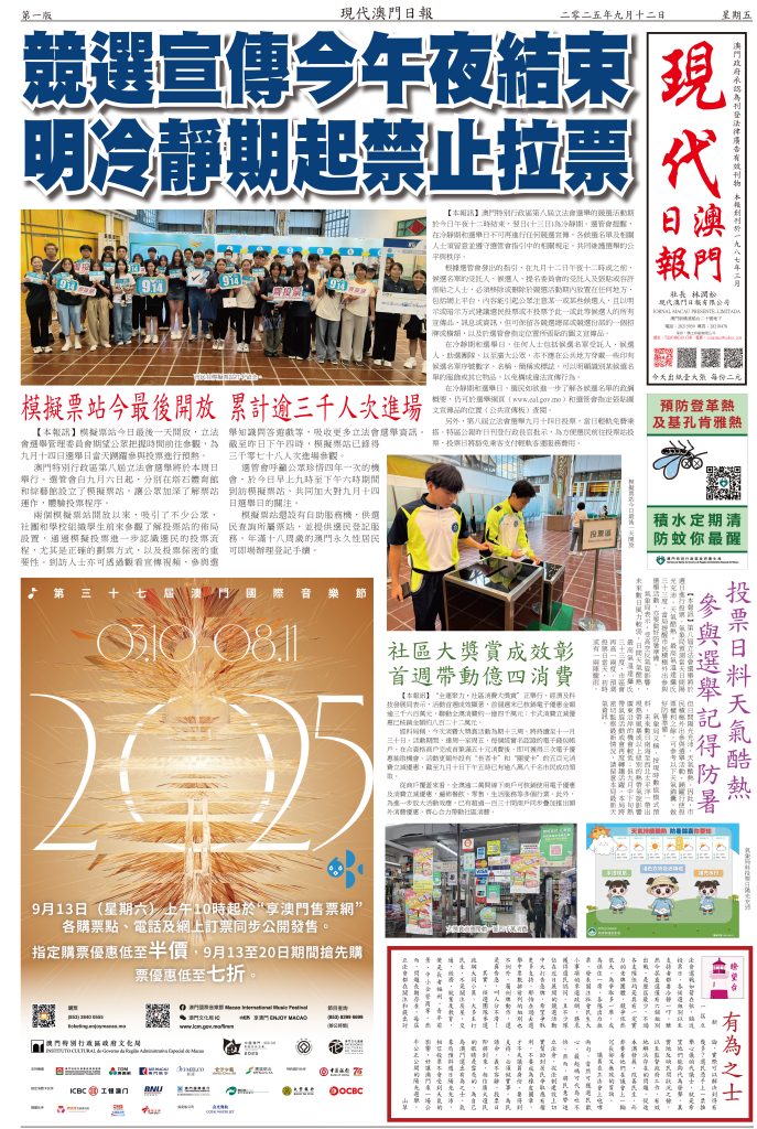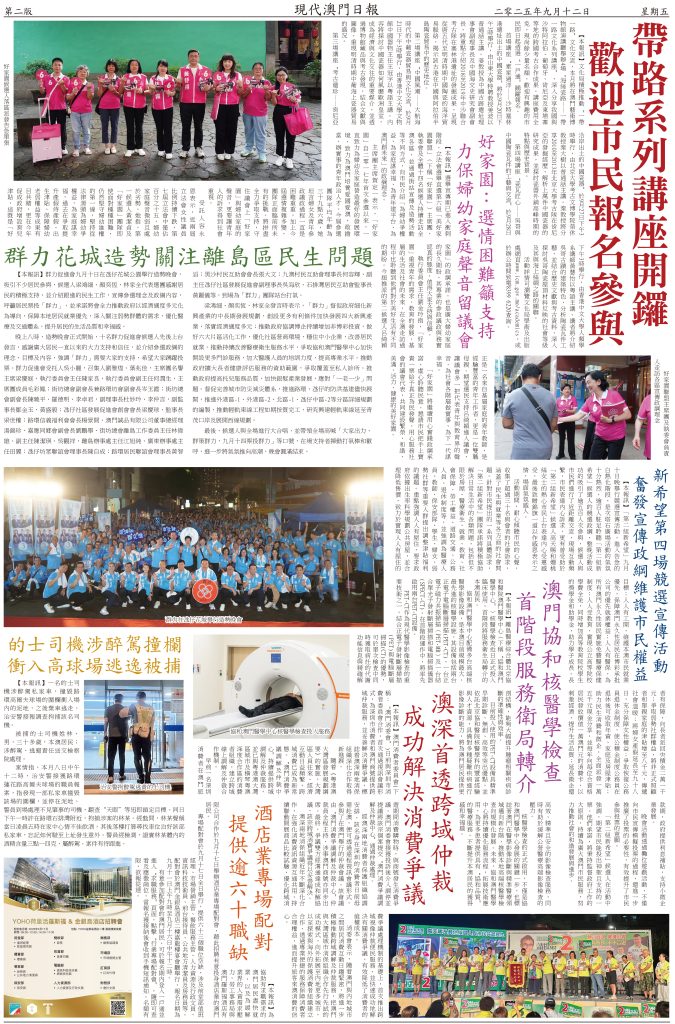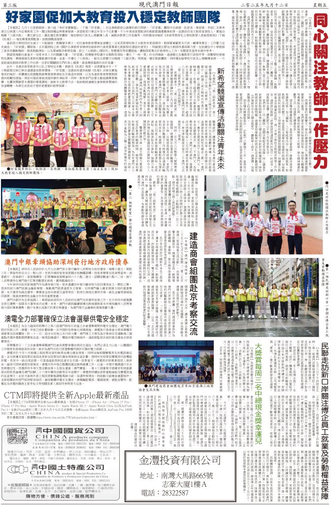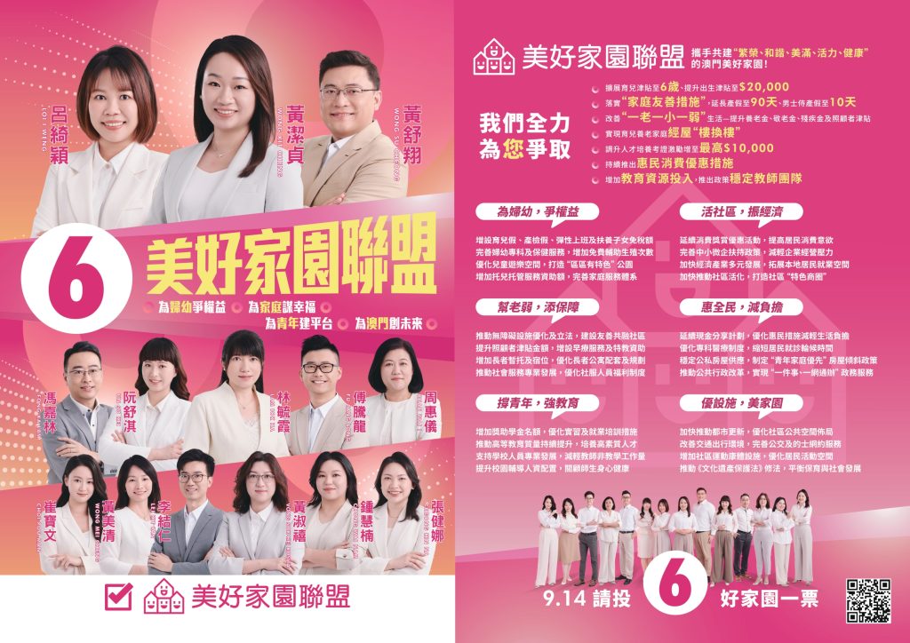 【本報訊】選舉宣傳期已進入衝刺階段。立法會選舉直選第六組「美好家園聯盟」(下稱「好家園」)主席團、執委會及全體十四名候選人持續走訪全澳各區,並通過街站宣傳及造勢活動等不同方式,向市民介紹「為婦幼爭權益、為家庭謀幸福、為青年建平台、為澳門創未來」的政綱理念。