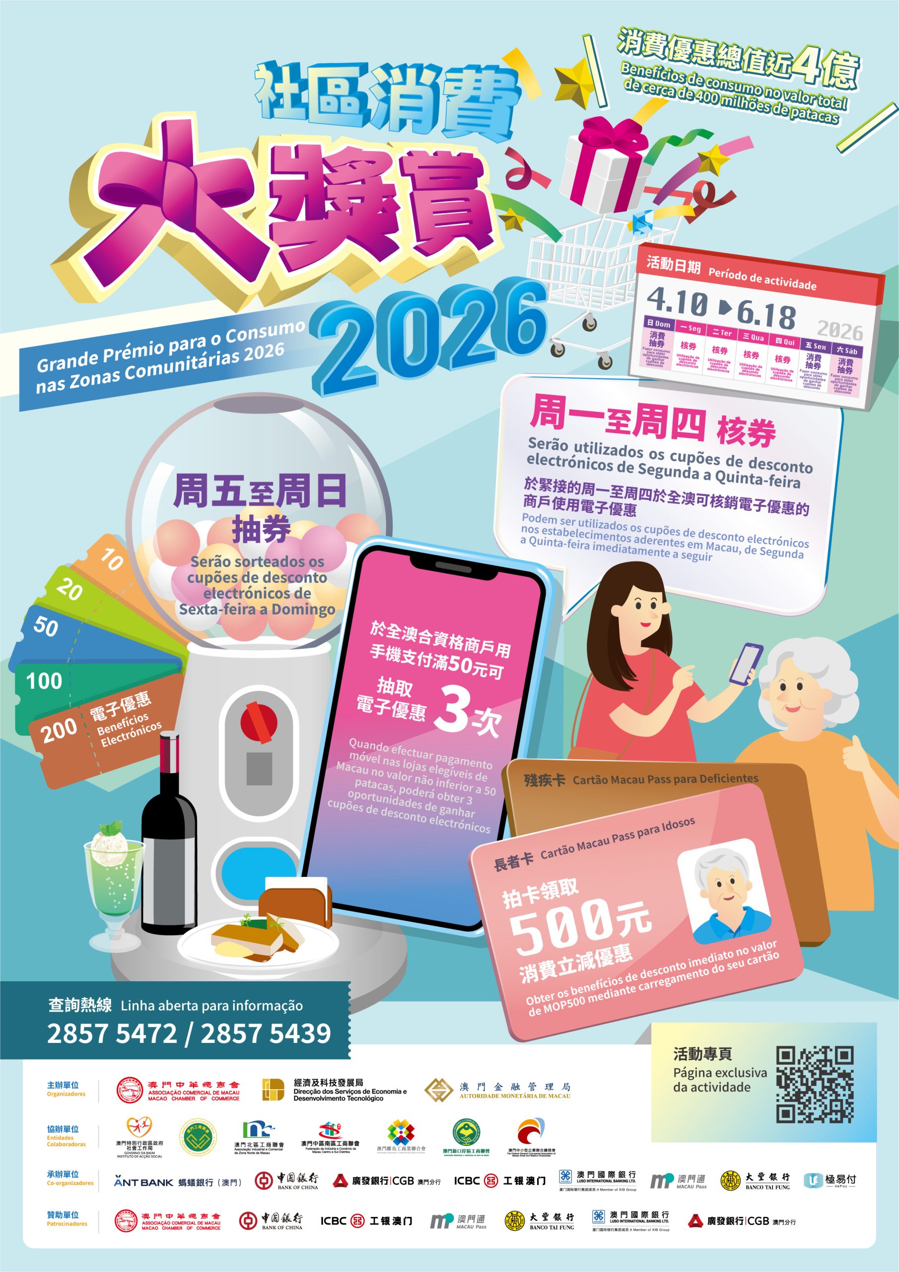 【本報訊】新一輪社區消費大獎賞明日起啟動,活動為期十周,發放總值近四億澳門元的消費優惠。經科局產業發展廳廳長劉傑麟表示,今次調整核銷時間,延長至四日,可讓居民有更充裕時間用券及規劃消費。希望透過活動激活傳統旅遊淡季社區經濟及增加市場信心,吸引居民留澳消費。